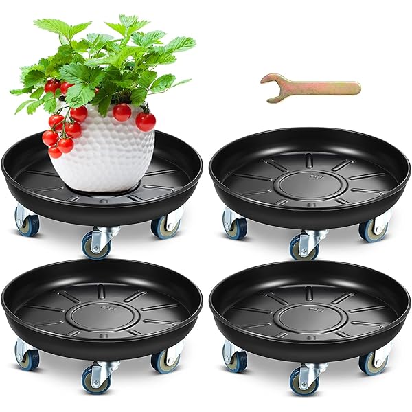 Amazon Com 4 Pieces Black Round Flower Pot Mover Rolling Plant Pallet Dolly Caddy With 20 Wheels Mover 16 Inch Heavy Duty Plant Stand Metal Plant Stand Black Plant Stand For Indoor Outdoor